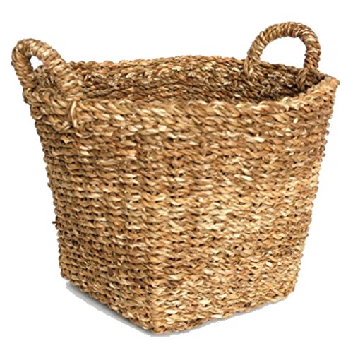 Beautifully shaped, robust woven basket of sea grass in three different sizes. It works well as a waste paper basket, decorative basket or for storing just about anything. The basket is round at the top, square at the bottom, and has two convenient handles. All baskets are completely hand-made under fair conditions.
