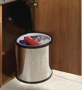Automatic opening waste bin to suit minimum 400mm wide cabinet, polished steel, 1 x 12 litre capacity