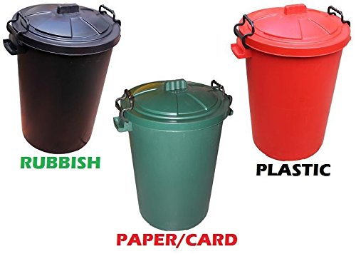 - Comes with carry handles for easy relocation - This set of 3 will make sure your rubbish, plastic and paper/card is easily kept organised and apart for rubbish day