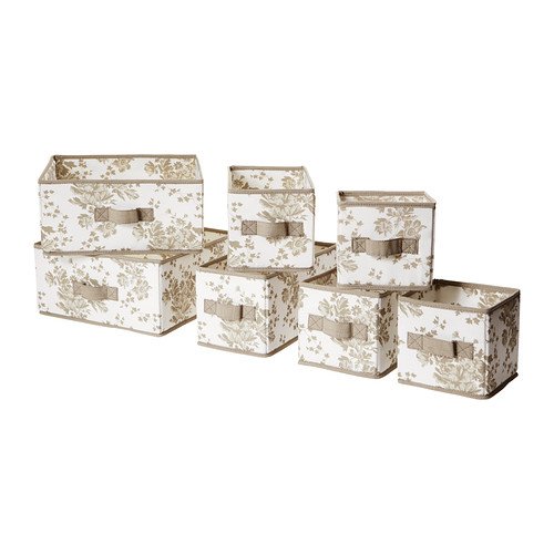 Buy GARNITYR White Flower Beige Storage Boxes with Handle on the Side , Set of 7 (Ideal to organise socks, belts and jewellery in your wardrobe or chest of drawers)